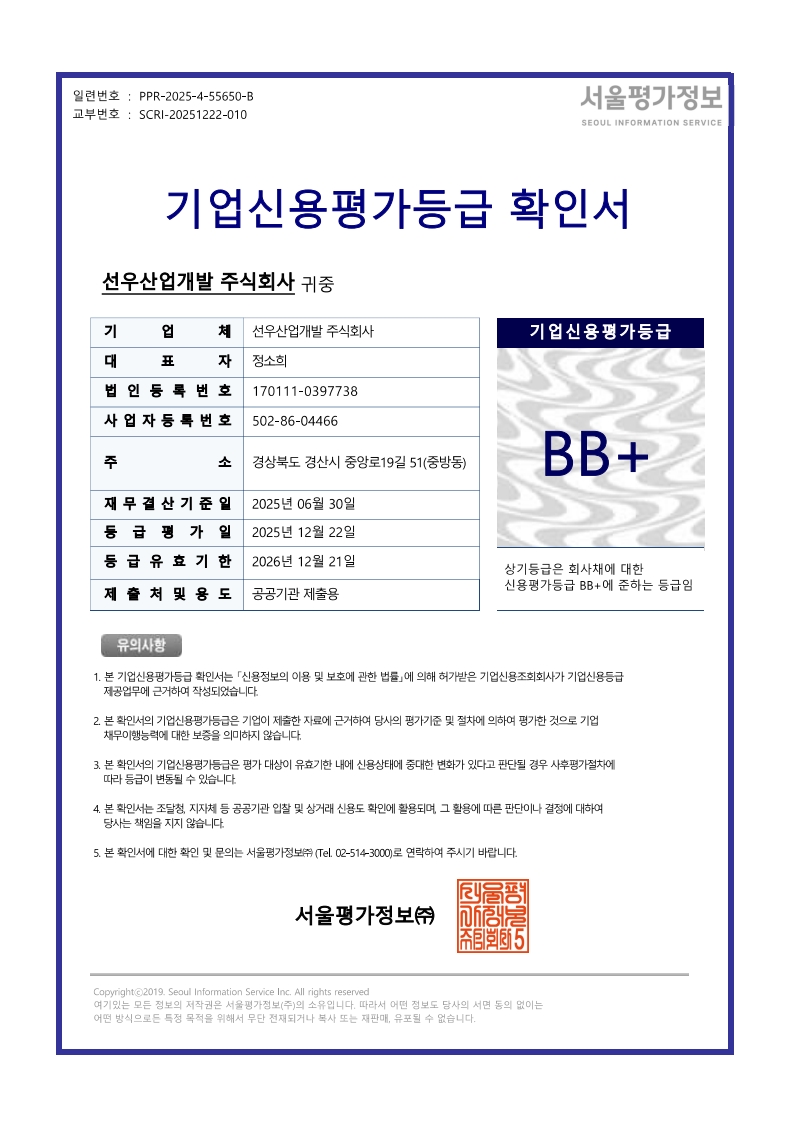 신용등급평가확인서(2025년)