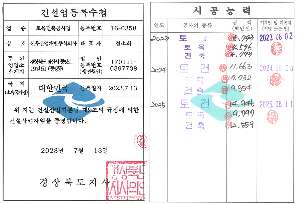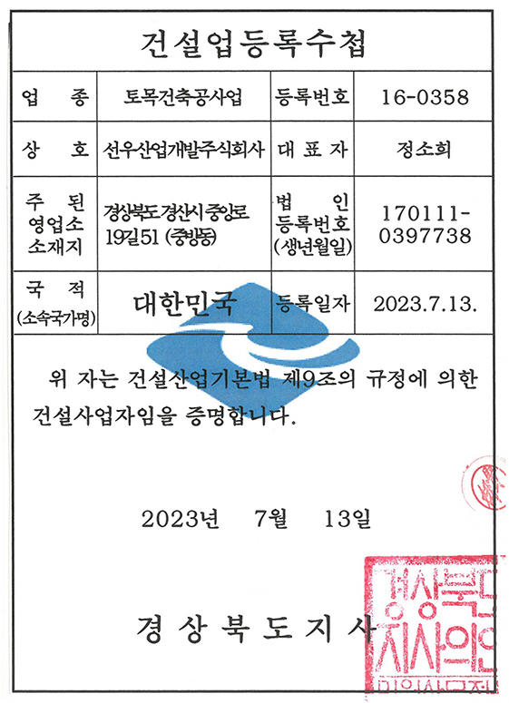 수집 및 이용목적 : 선우종합건설(주) 1:1문의에 대한 답변