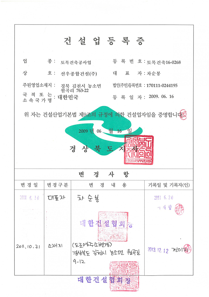 건설업등록증(토목건축)_선우종합건설(주)